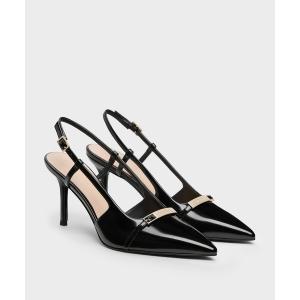 パンプス メタリックバー ポインテッドスリングバックスティレット