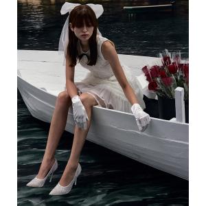 パンプス レース&サテン ポインテッドトゥスティレットヒールパンプス