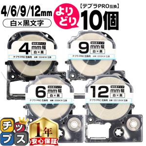 テプラテープ 白 4mm/6mm/9mm/12mm(テープ幅) テプラPRO用互換 キングジム対応 自由選択 10個 白/黒文字 互換テープ 強粘着 SS4KW SS6KW SS9KW SS12KW