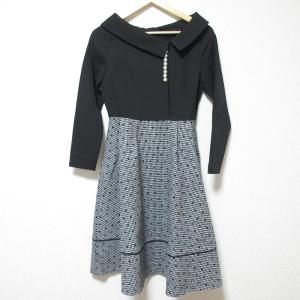 美品 Chesty チェスティ クラシカルドットワンピース ストレッチ パールディティール 長袖 フレア ミディドレス 13W510 0 ブラック レディース 古着 中古
