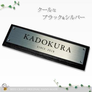 おしゃれなウッド&メタル調表札(木製)スモークシルバー 60×200mm 長方形 横長 取り付け簡単・吊り下げにもできます データ入稿可 水濡厳禁