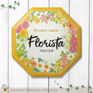 表札 おしゃれな木製表札 風水表札 フラワーリング M 八角形 黄色 戸建 マンション 二世帯 連名 サロン データ入稿可 雨ざらし不可 取り付け簡単 吊り下げにも