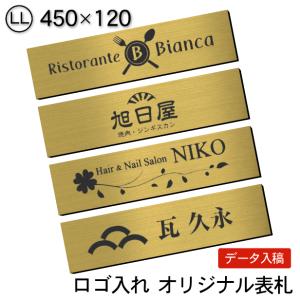 ロゴマークOK 看板 表札 会社 プレート 真鍮風 ゴールド LL 450×120 大 屋外対応 オーダー データ入稿 看板製作 金色 シール式 メール便送料無料