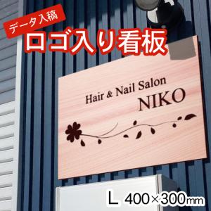 ロゴマークOK 大きい看板 表札 プレート 木目調 フェイクウッド L 400×300 屋外対応の大きい看板製作 オーダー データ入稿 おしゃれ シール式 送料無料