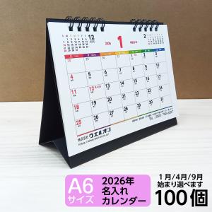 名入れ カレンダー 黒 │2026 卓上 販促 ノベルティ 六曜 オフィス 年末年始 (小ロット 袋入れ 個包装)(選択 1月 4月 始まり) 黒 100個