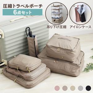 トラベルポーチ 吊り下げ 圧縮ポーチ 6点セットトラベルグッズ アイロンケース 圧縮袋 圧縮ポーチ 旅行 衣類 旅行用圧縮袋 旅行用ポーチ おしゃれ