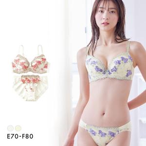 ニッセンとトリンプ共同企画 フラワーブラジャーショーツセット フラワーブーケ柄 EF