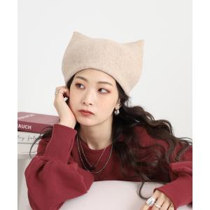 帽子 ベレー帽 猫型 縮絨ベレー レディース