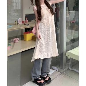 ワンピース ワンピース ロング丈 夏 カジュアル クロシェ編み ニット 背中開き バックオープン ワンピ