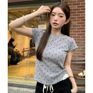 tシャツ Tシャツ ドット 柄 半袖 トップス バレエコア ピチT レディース