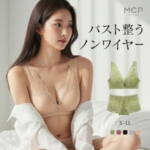 ブラジャー ショーツセット 谷間メイク ノンワイヤーレースブラ&ショーツ 2点セット