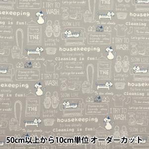 【数量5から】 生地 『シーチング お掃除ネコ グレージュ ACS1110-D』 COTTON KOBAYASHI コットンこばやし 小林繊維