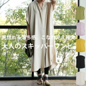 スキッパーワンピース ワンピース レディース 五分袖 送料無料・再入荷 メール便不可
