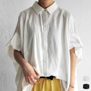 半袖ワイドシャツ シャツ レディース トップス 半袖 ドルマン・再入荷 500ptメール便可
