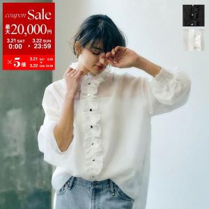 anana アナナ ブラウス a56-013 レディース 2way ルーシュタイ シアー フリル バンドカラー ノーカラー 長袖 セレモニー対応可 カラー2色