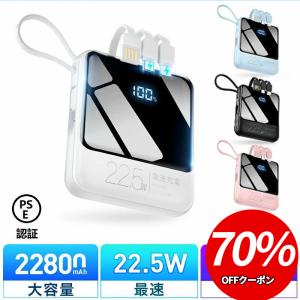 モバイルバッテリー 軽量 小型 22800mAh 5台同時充電 ケーブル内蔵 機内持込 携帯充電器 防災グッズ iphone/ipad/Android対応 PSE認証済