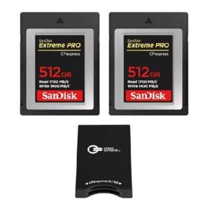 並行輸入 SanDisk Extreme PRO 512GB CFexpress Type-B メモリーカード、2パック、グリーンエクストリームデュアルスロットメモリーカードリーダー付きバンドル