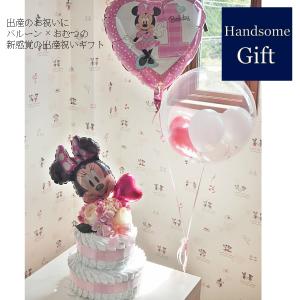 おむつケーキ 出産祝い ディズニー ベビーシャワー 御祝 贈り物 祝電 2ステップおむつケーキパンツタイプ ミッキーマウス・ミニーマウス 2b ヘリウムバルーン