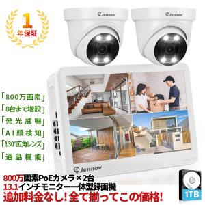 800万画素 poe給電 1TB HDD内蔵 防犯カメラ 2台セット 屋外 屋内 家庭用 有線 防犯カメラセット 監視カメラ スマホ連動 パソコン 遠隔監視 IP67防水防塵
