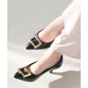 パンプス スクエアバックル ソフトポインテッドトゥパンプス