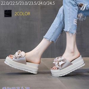 厚底 サンダル ビーチサンダル リボン付き ヒール7cm 2colors