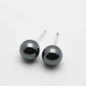 8mm シルバー925 ヘマタイト ピアス スタッド 天然石 ブラック グレー シンプル 大ぶり 大きめ カジュアル 普段使い ユニセックス 日本製