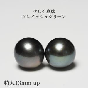タヒチ真珠 ピアス グレイッシュグリーン 特大13.5mm/セミラウンド イヤリングにも変更可 黒蝶パール 大ぶり ギフト カジュアル 普段使い 冠婚葬祭 日本製