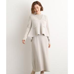 grove / グローブ 【2点SET/体型カバー】一枚で決まる、ペプラムベスト×ニットワンピース