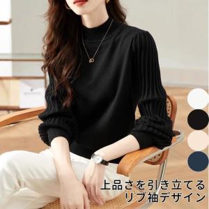 ブラウス ニット レディース トップス ハイネック 長袖 リブ袖 セーター オフィス オフィスカジュアル プルオーバー 秋冬 秋 冬 春 秋冬 可愛い おしゃれ ファッ