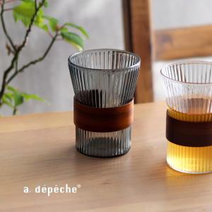 a.depeche noon アデペシュ ヌーン デザインカップ(グラス おしゃれ タンブラー 北欧 コップ かわいい ガラス 耐熱 スリーブ付き 木 ウォルナット)