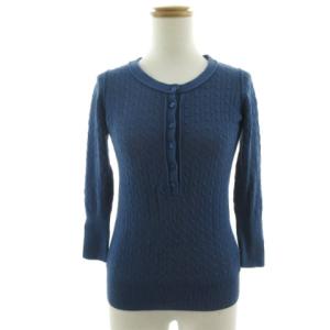 ザラ トラファルック ZARA Trafaluc ニット ヘンリーネック 七分袖 リブ ケーブル編み コットン ブルー系 青系 S レディース