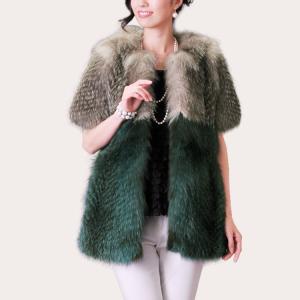 毛皮/ミンク 編み込み ケープ ジャケット ラクーン トリミング 毛皮コート