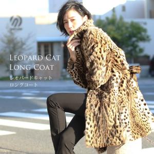 レオパード キャット コート 毛皮 テーラーカラー ベルト 付き 着丈90cm レディース ナチュラル(01000865r) 秋冬 毛皮コート
