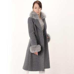 ロングコート タスマニアリバーウール フォックスファー付き テーラーカラー 着丈106cm レディース 秋冬 日本製 (02000210r)