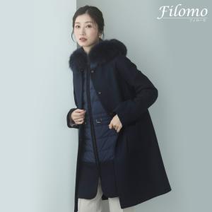 ライナー 付き コート 3way ダウンベスト レディース ツイード フォックスファー ファー ノーカラー Filomo (02000222r)