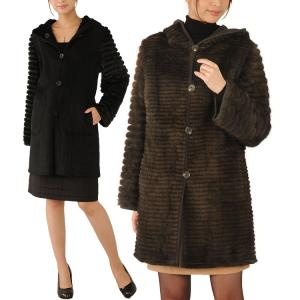 毛皮/ミンク カシミヤ混 リバーシブル コート フード付きファーコート 秋冬 毛皮コート