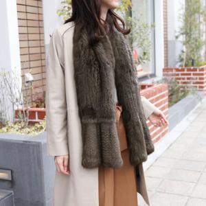 ラビット ダブルフェイス ロングコート フォックストリミング ベルト付き / レディース [訳あり] 毛皮コート