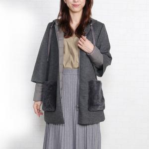 ウール コート レディース フード 付き レッキス ファー ポケット 秋 冬 毛皮 (2019-01r) (各サイズ一点限り)