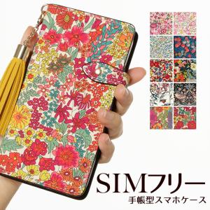 シムフリー 楽天モバイル HUAWEI エイスース ゼンフォン 手帳型 花柄 フラワー リバティ コットン スマホケース ハイブリットレザー タッセル付き ベルト付き