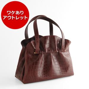 【訳あり】クロコダイルハンド バッグ ギャザー デザイン レディース ボルドー(6100-76r) 保証書 付き