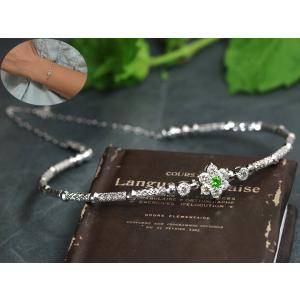 デマントイドガーネット0.05ct前後 無色ダイヤモンド取り巻き0.32ct前後 K18WGバングル 形状記憶ワイヤー 金具フリー 受注品
