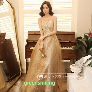 カラードレス ウエディングドレス パーティードレス 演奏会 発表会 花嫁 イブニングドレス ブライダル 二次会 ロングドレス ゴールド 花柄 ノースリーブ 披露宴