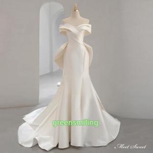 ウェディングドレス ロングドレス マーメイドドレス オフショルダー サテン リボン 二次会 結婚式 前撮り ブライダル 花嫁 ウエディングドレス