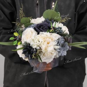 ブーケ ブライダルブーケ オーバルブーケ ウエディングブーケ 花嫁 造花 可愛い 結婚式 二次会 披露宴 後撮り リゾート婚 ギフト プレゼント ブルー 青