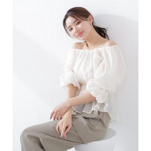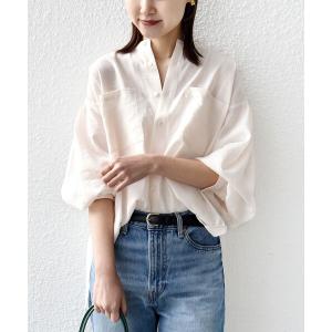 ブラウス シャツ SHIPS any:「洗濯機可能」リネン ミックス シアー ボリューム スリーブ ブラウス レディース