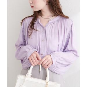ブラウス シャツ 「セレモニー」バンドカラー タックブラウス レディース