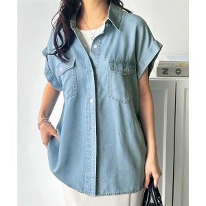 ブラウス シャツ 着回し自在!オーバーサイズフレンチスリーブデニムシャツ レディース