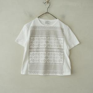 【美品/定価1.6万】アンティパスト ANTIPAST *フロッキープリントカットソー*1半袖プルオーバー白Tシャツ綿(4-2509-35)【90J52】