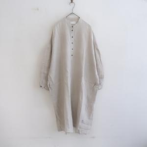 【定価2.8万】ハウス HUIS. *シャトルリネンバンドカラーワンピース*Fナチュラルベージュ麻ドレスワイド(m1-2505-463)【22F52】