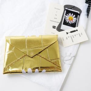 美品 エバゴス ebagos ワニ型押し マーガレットプリント メタリック 封筒型ポーチ ゴールド┃レザー クロコ柄【2400014630046】